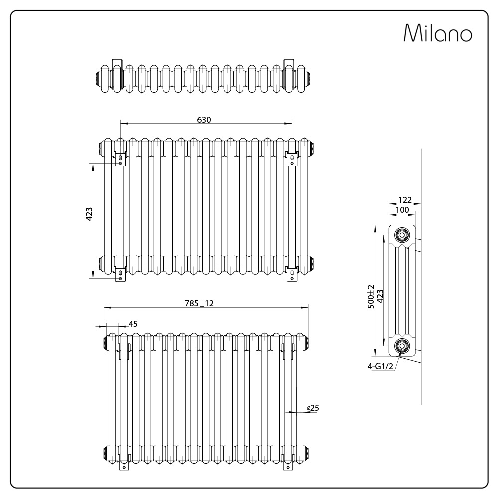 Milano Windsor - Lacquered Raw Metal Horizontal Traditional Column Radiator - 500mm x 785mm (Triple Column)