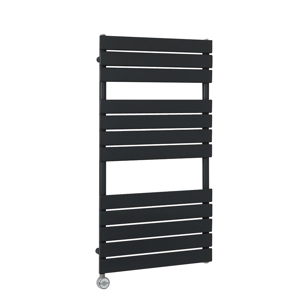 Milano x ECOSO Lustro Electric - Black Flat Panel Designer Heated Towel Rail - 1200mm x 600mm - with Thermostatic Wi-Fi Heating Element