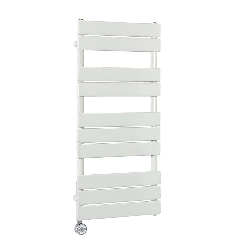 The perfect combination of form and function, this electric towel rail features stylish flat panels in a hard-wearing white powder coated finish and ample towel hanging space. It has been made from premium quality steel and is pre-filled with glycol, which helps to prevent noise, rust and limescale, ensuring maximum performance.
