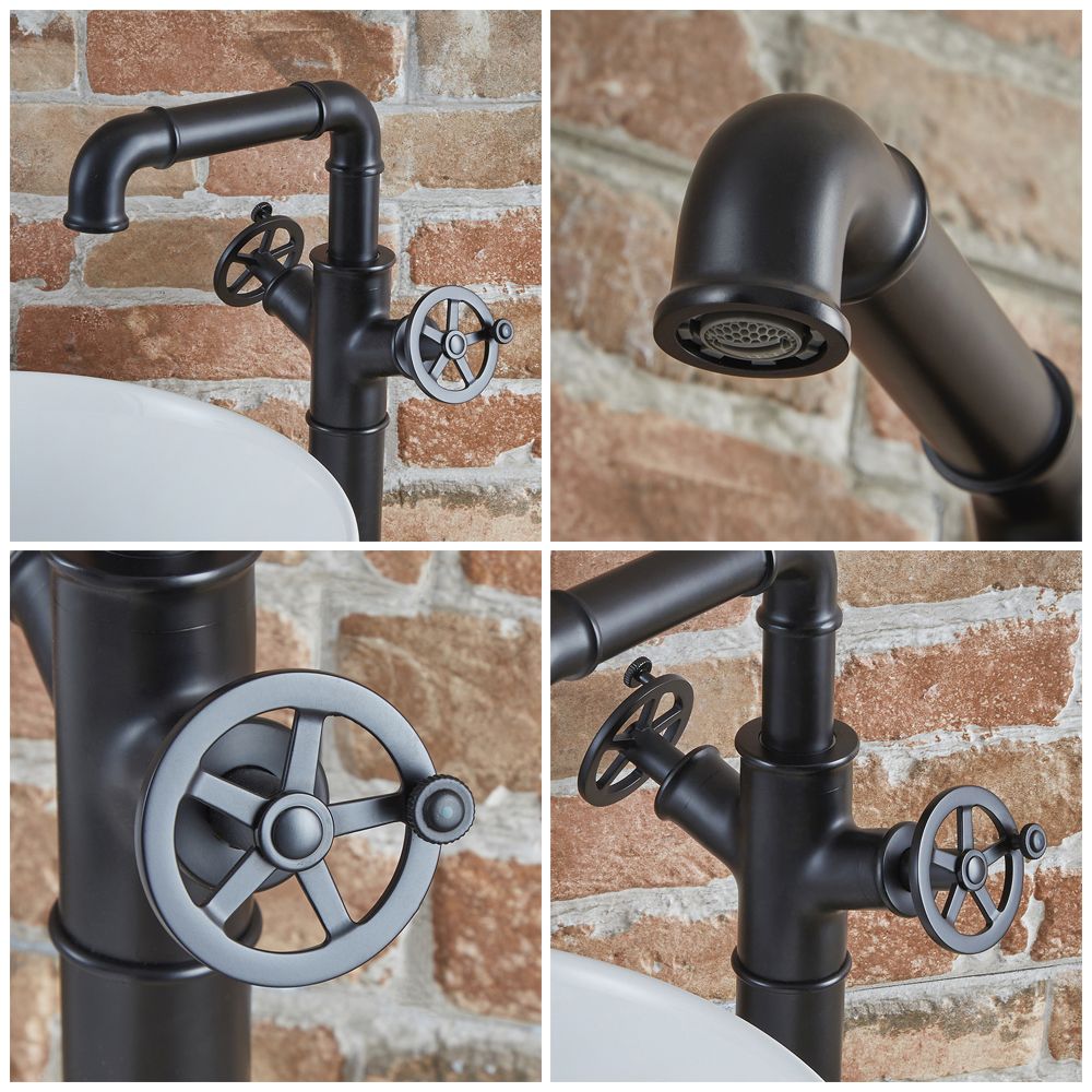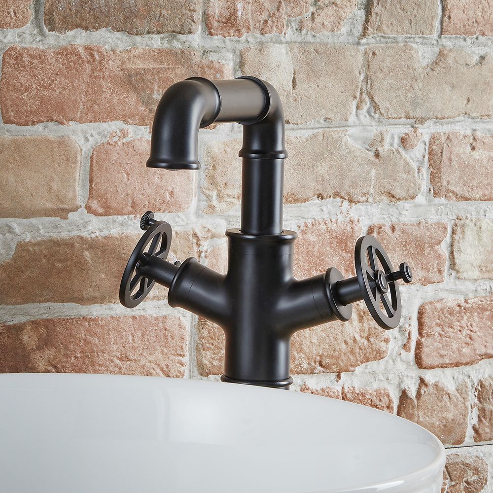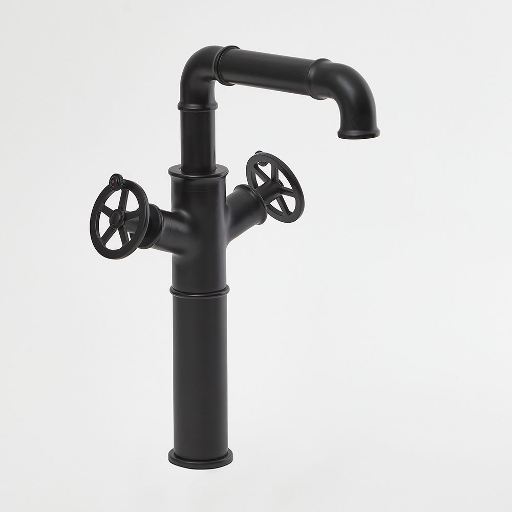 Sure to make a statement, this industrial style basin tap features a hard-wearing matt black finish and circular handles, which provide effortless control. Perfect for use with our countertop basins with no tap-holes, the Zandra tall basin tap has been made to the highest standards from solid brass, ensuring excellent strength and durability. It incorporates ceramic disc technology too, helping to prevent leaks and drips.