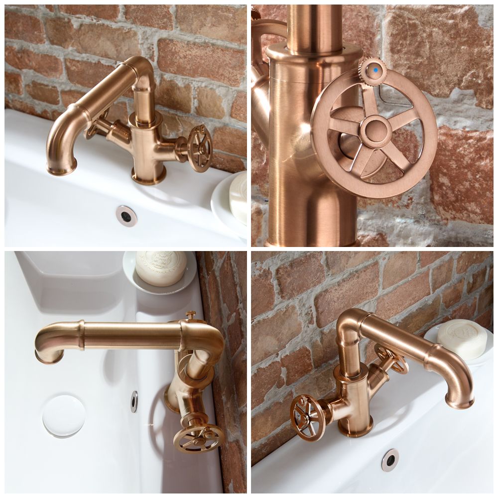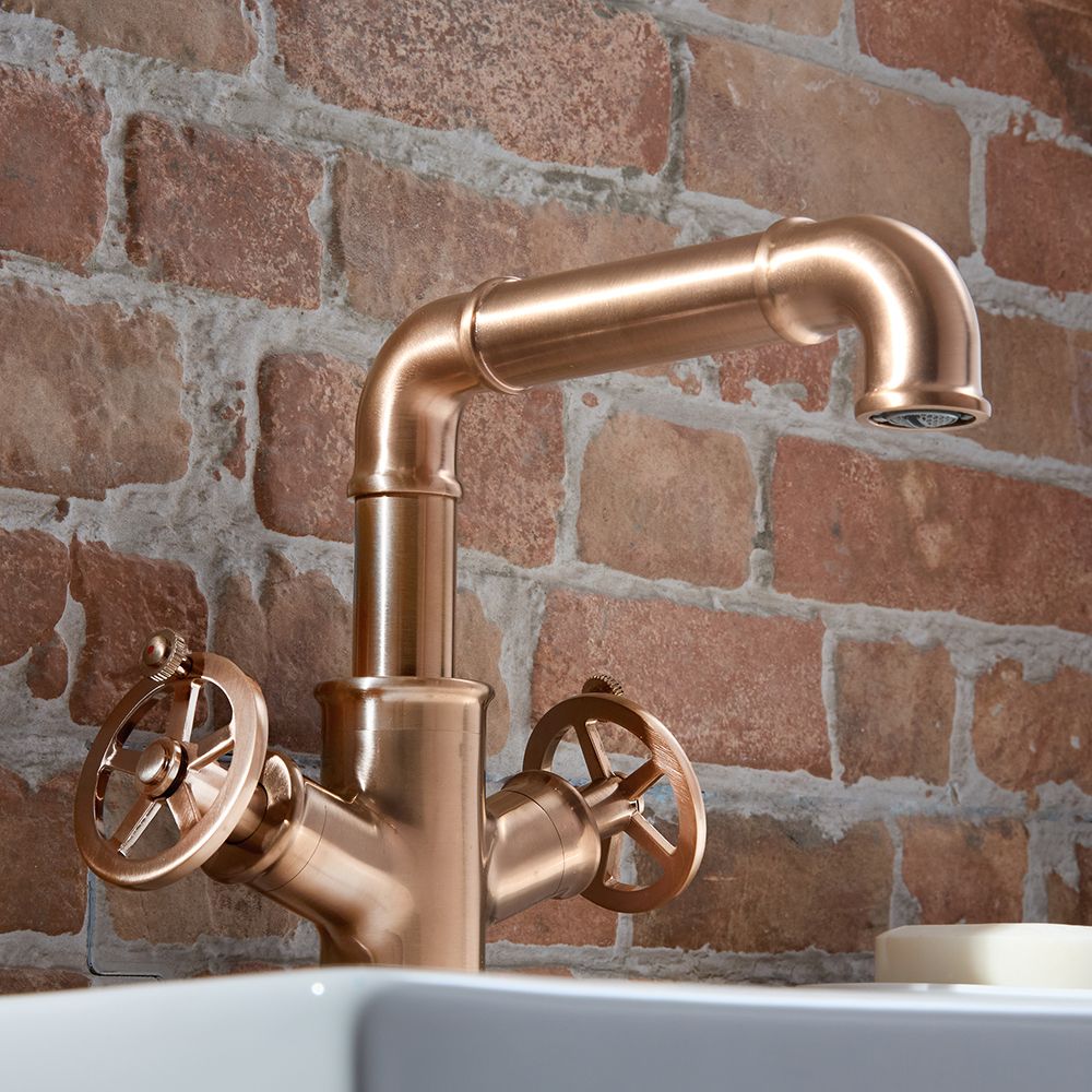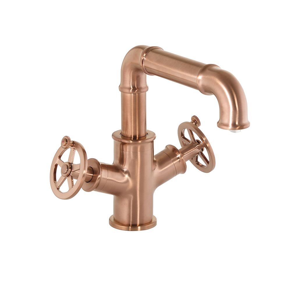 This sink mixer tap blends Victorian elegance with bold industrial elements for a unique look. It features a hard-wearing brushed copper finish and stylish circular handles, which provide effortless control.
