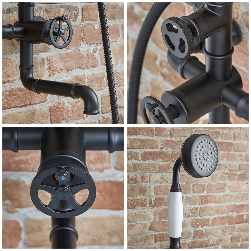 With a steampunk inspired design for an alternative feel, this bath shower mixer tap features a hard-wearing matt black finish and a stylish circular handle that provides effortless flow and temperature control. It has been crafted to the highest standards from solid brass, ensuring long-term durability and incorporates ceramic disc technology to prevent leaks and drips.