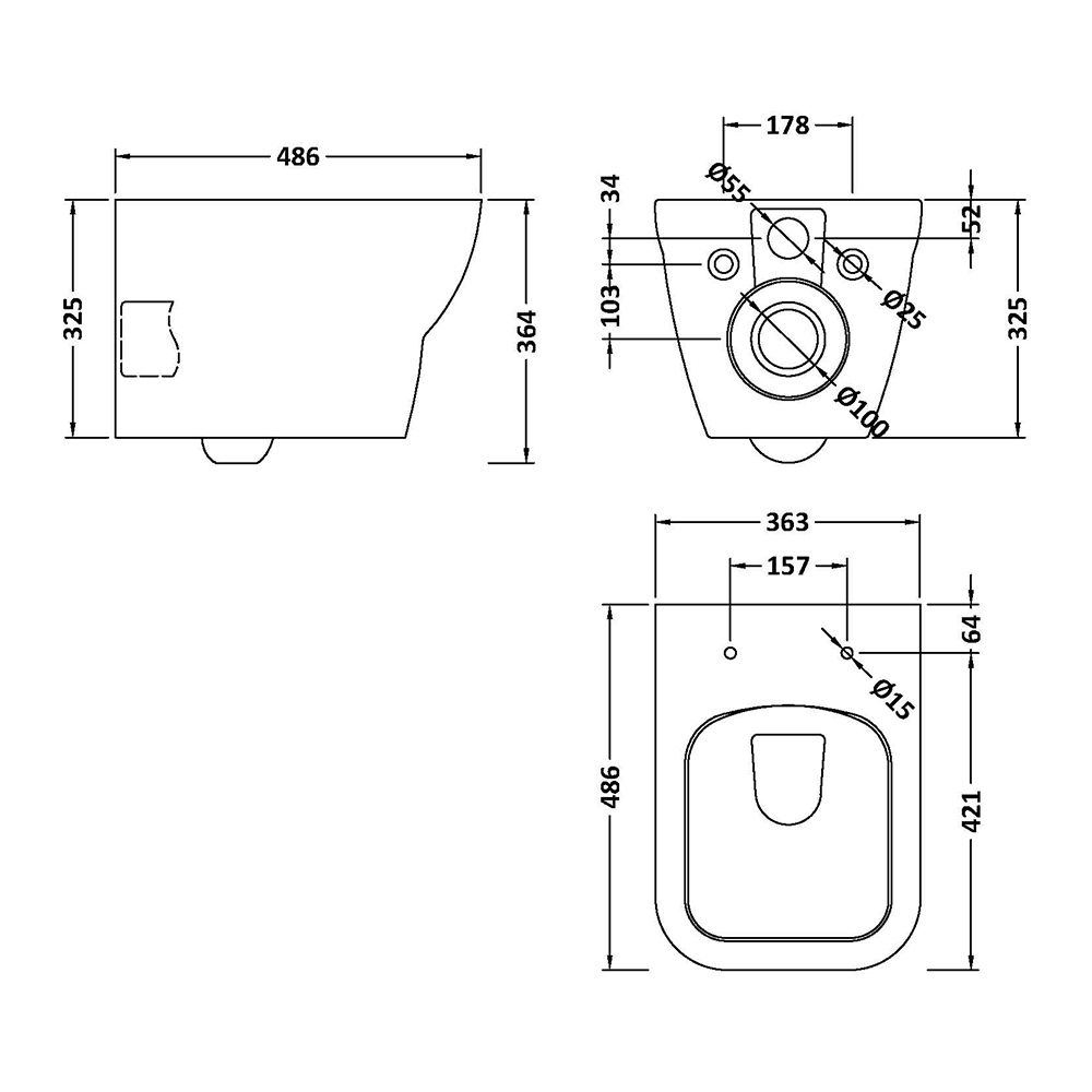 - Rimless design for easier cleaning and improved hygiene