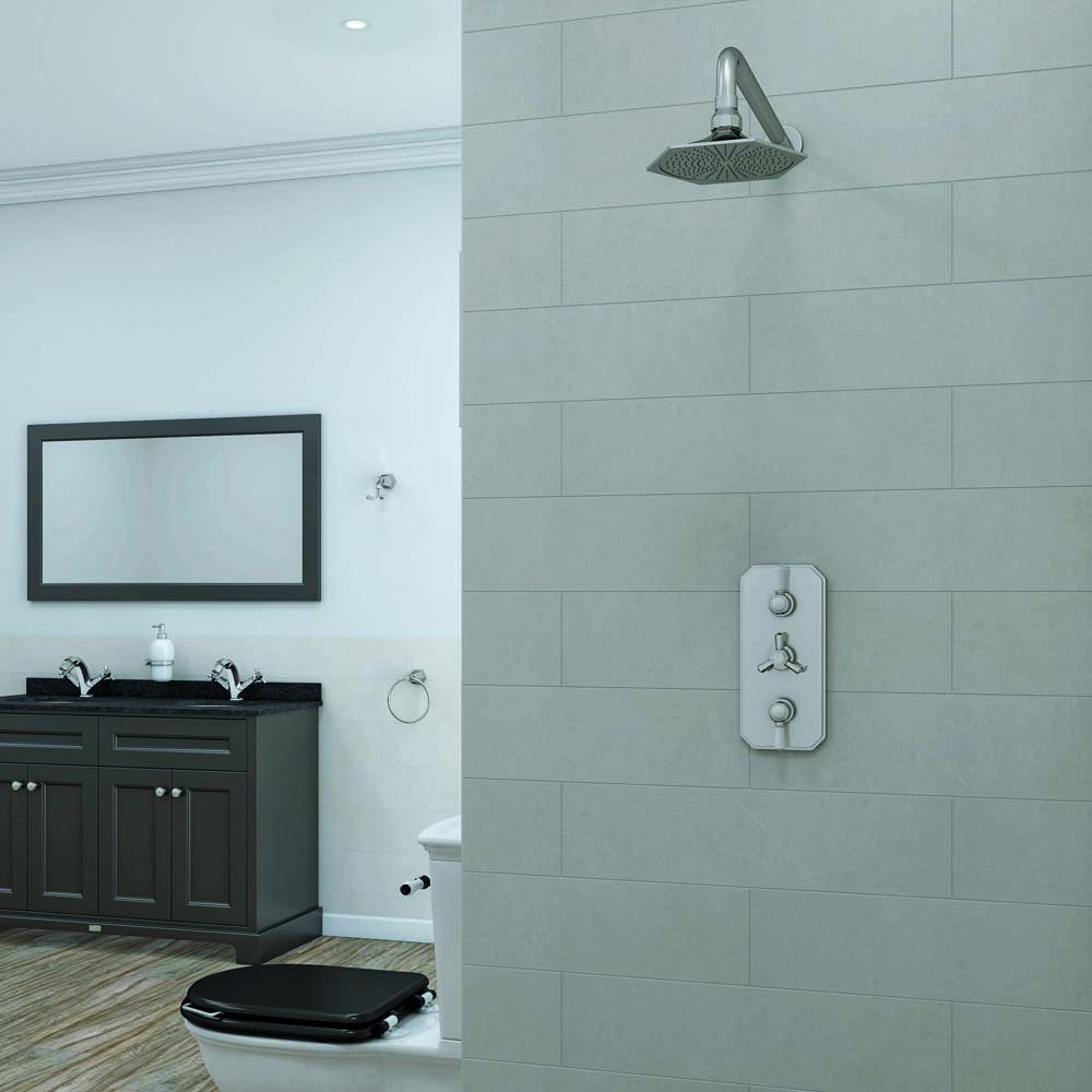 Bring timeless elegance to your bathroom with the RAK Washington chrome traditional shower head, complete with wall arm.