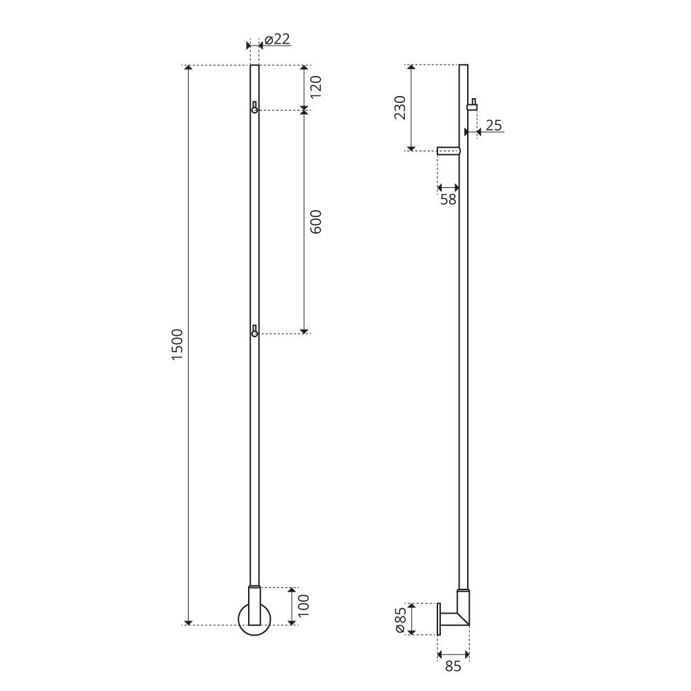 - Dimensions: 1500mm x 22mm x 22mm